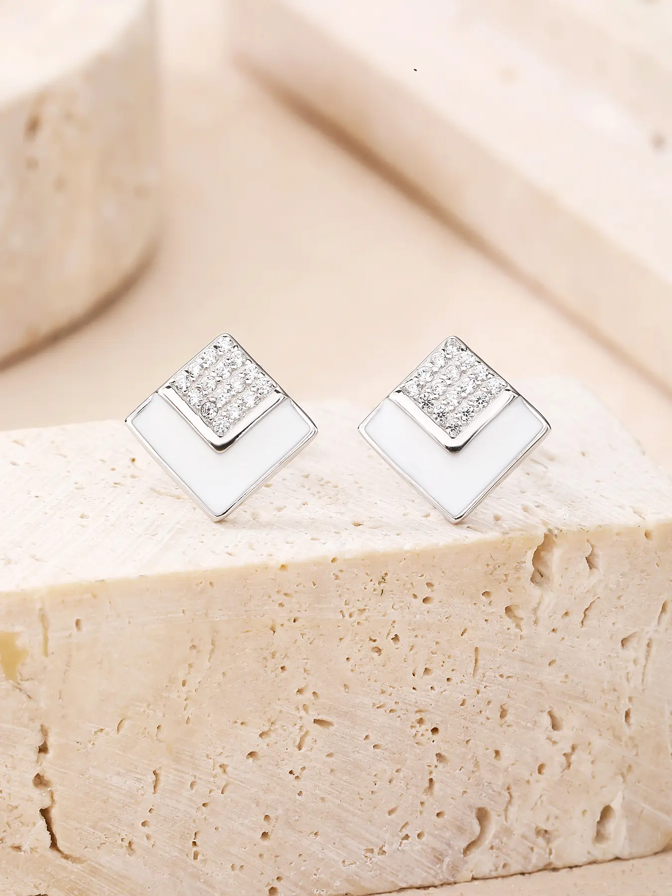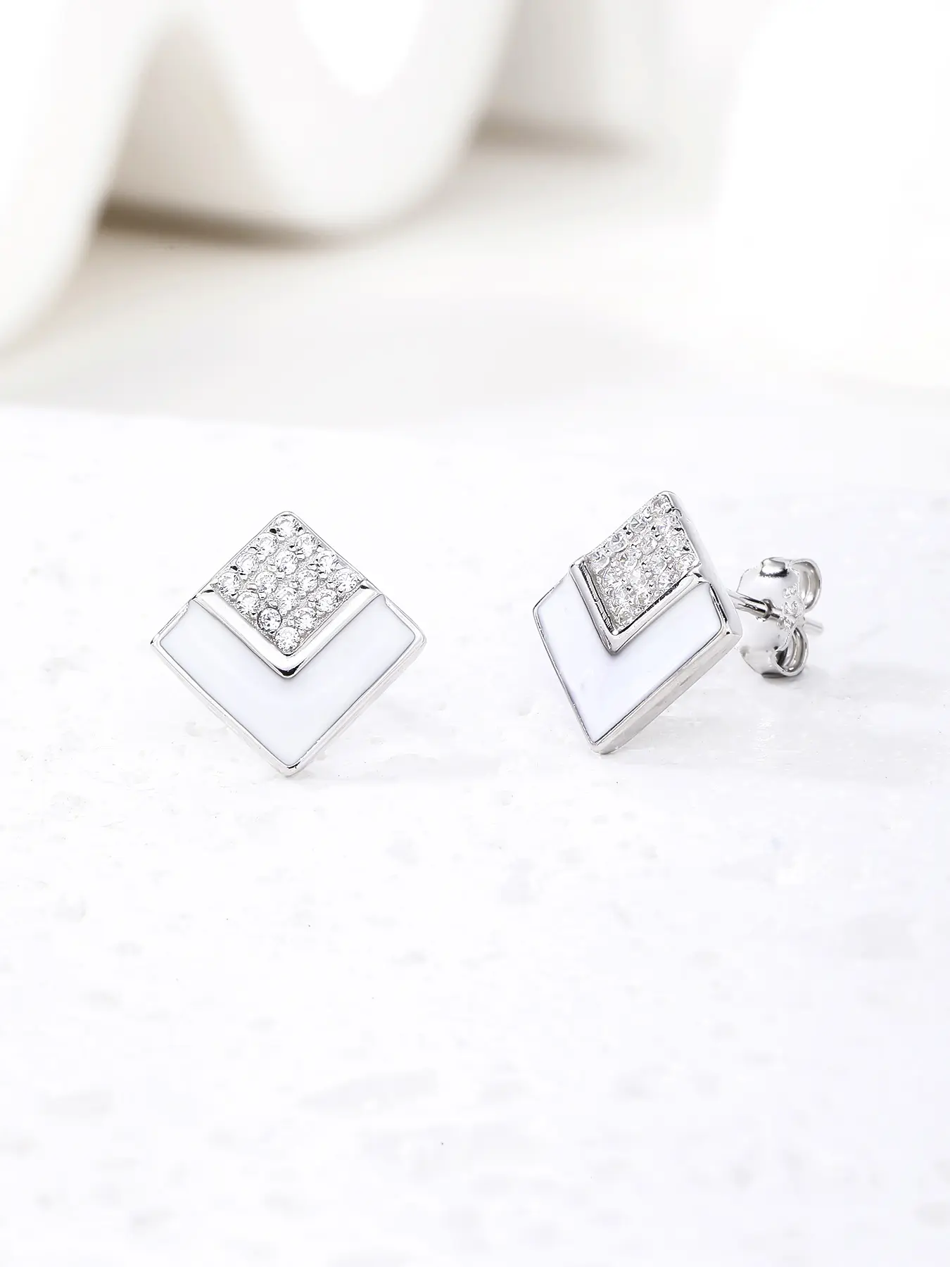 Dieser Ohrring ist die perfekte Verbindung von charaktervollem Design und schlichter Eleganz. Die weiße Emaille auf einer glänzenden Silberbasis verleiht der Form eine besondere Tiefe, während das verspielte Funkeln der Zirkoniasteine das Stück zum Leben erweckt. Eine ausgezeichnete Wahl für das tägliche Tragen, aber auch ein stilvoller Begleiter für festliche Anlässe. 🤍✨