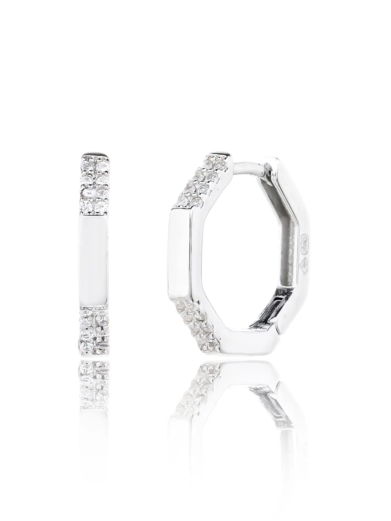 Silberne achteckige Ohrringe mit weißen Steinen – reiner Glanz für jeden Moment