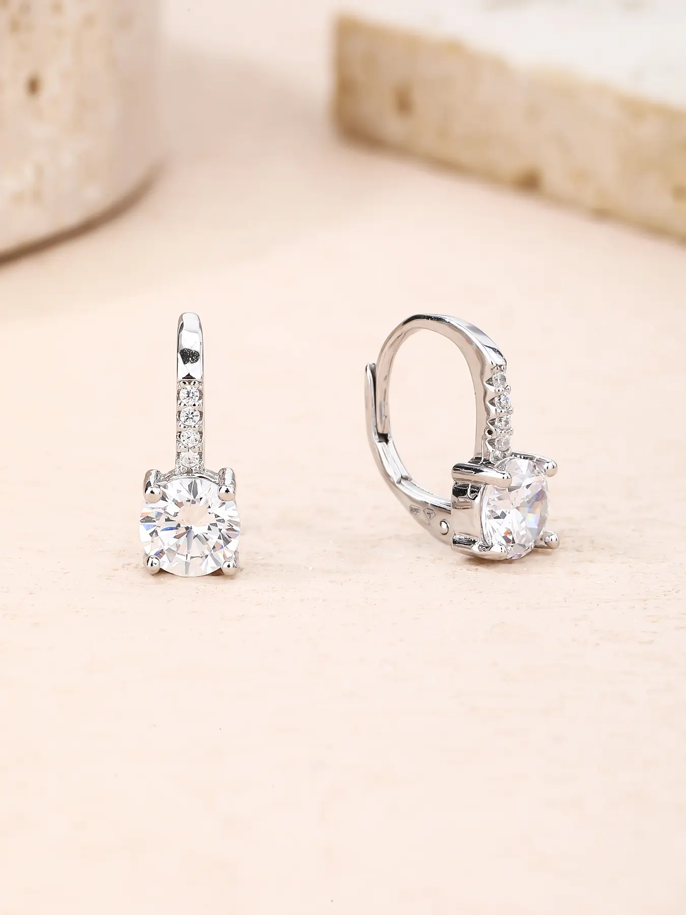 Silberne runde Zirkoniastein-Ohrringe mit Patentverschluss – Glanz ohne Kompromisse