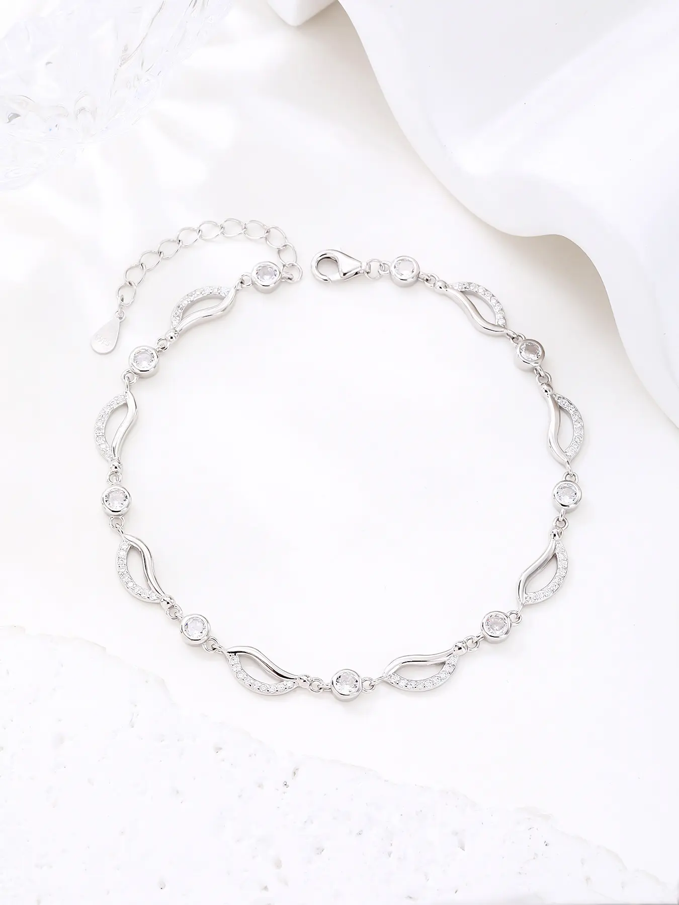 Dieses Armband ist mehr als nur ein glänzendes Schmuckstück – das wellenförmige Motiv symbolisiert die Schönheit der ständigen Erneuerung und Veränderung. Jede Welle steht für eine neue Gelegenheit, einen neuen Anfang, den Sie mutig angehen können. Die sanften Kurven der Wellen stehen für Weiblichkeit, Weichheit und Fließen, während die Zirkoniasteine inneres Licht und Ausstrahlung hervorrufen. 🌊✨