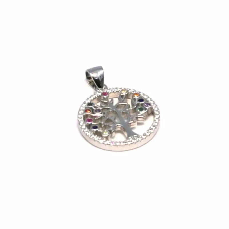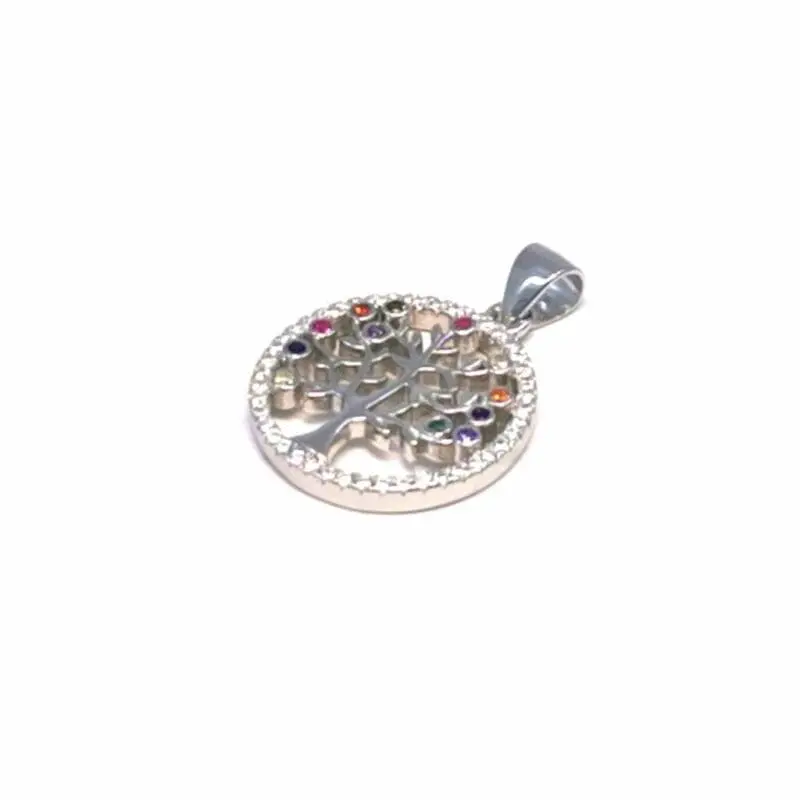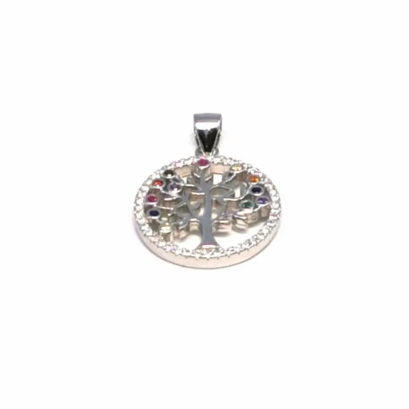 Ez a 925 ezüstből készült életfa medál a természet szépségét és az élet folyamatos megújulását ünnepli. A finoman kidolgozott ágas-bogas életfa motívumot gyönyörű, színes kövek díszítik, amelyek egyedi csillogást adnak az ékszernek. A ródium bevonat gondoskodik arról, hogy a medál hosszú távon is megőrizze fényét és ellenálljon az elszíneződésnek.