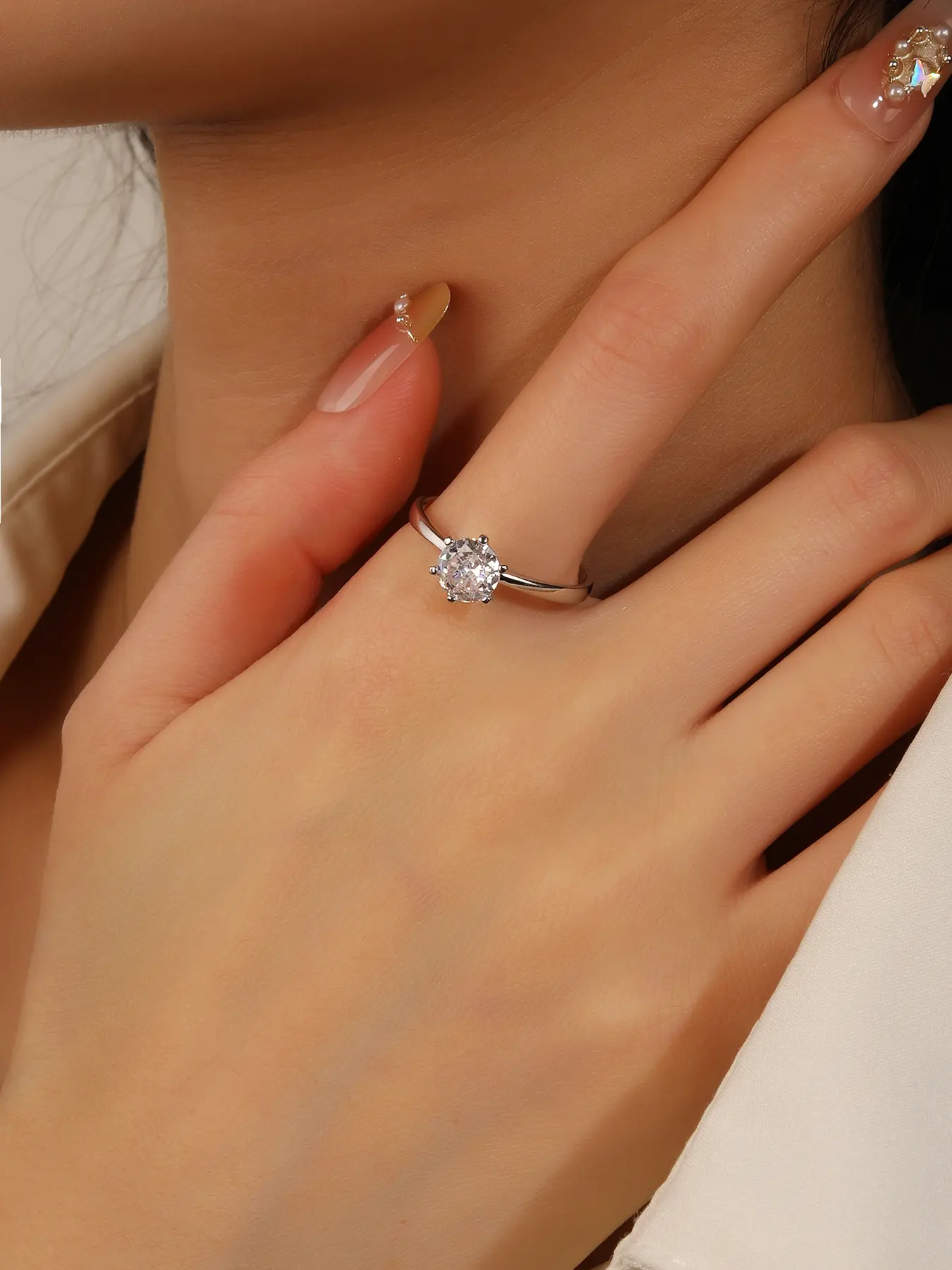 White cubic zirconia stone: reminiscent of diamonds at an affordable price.