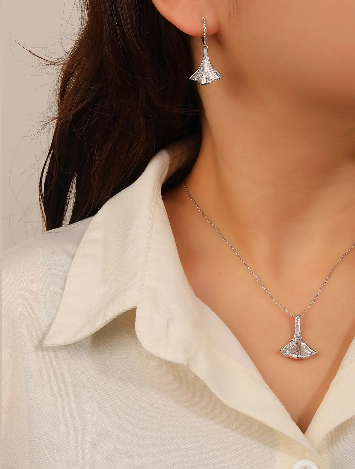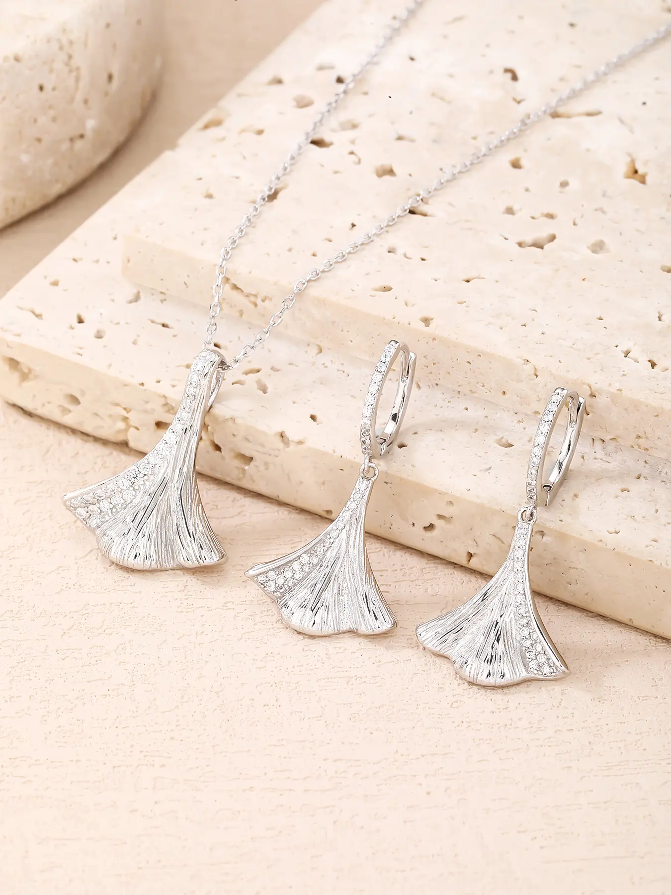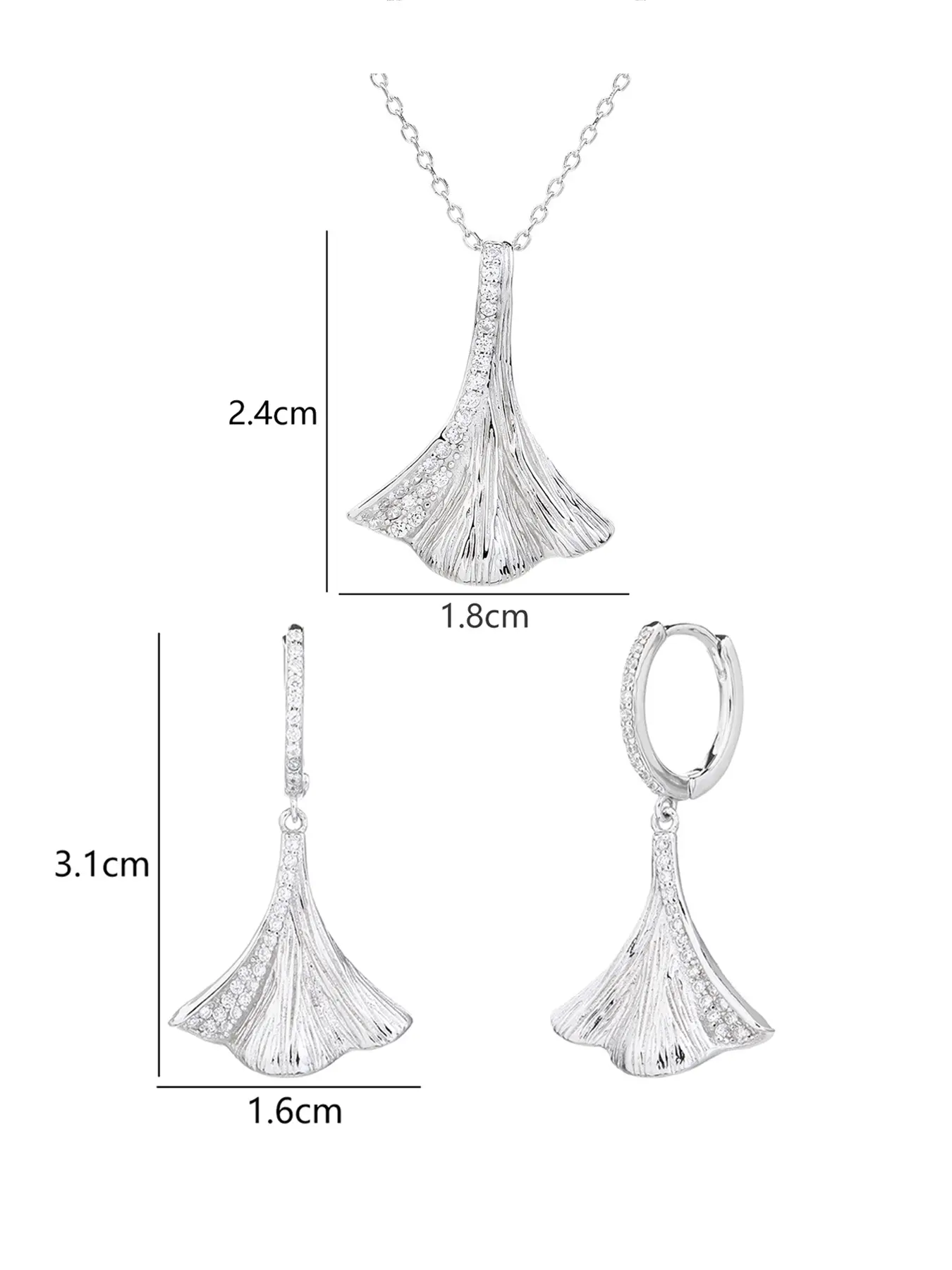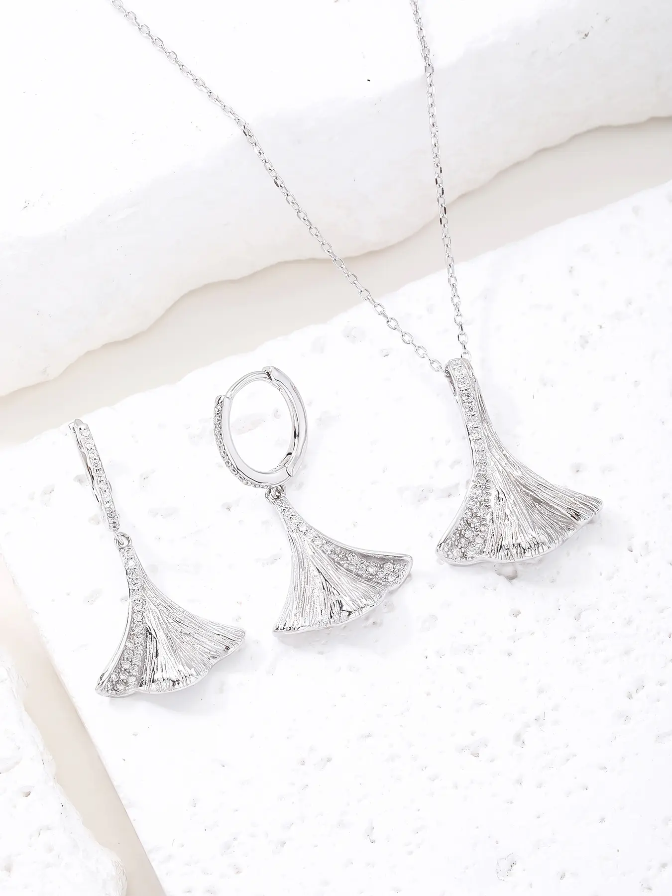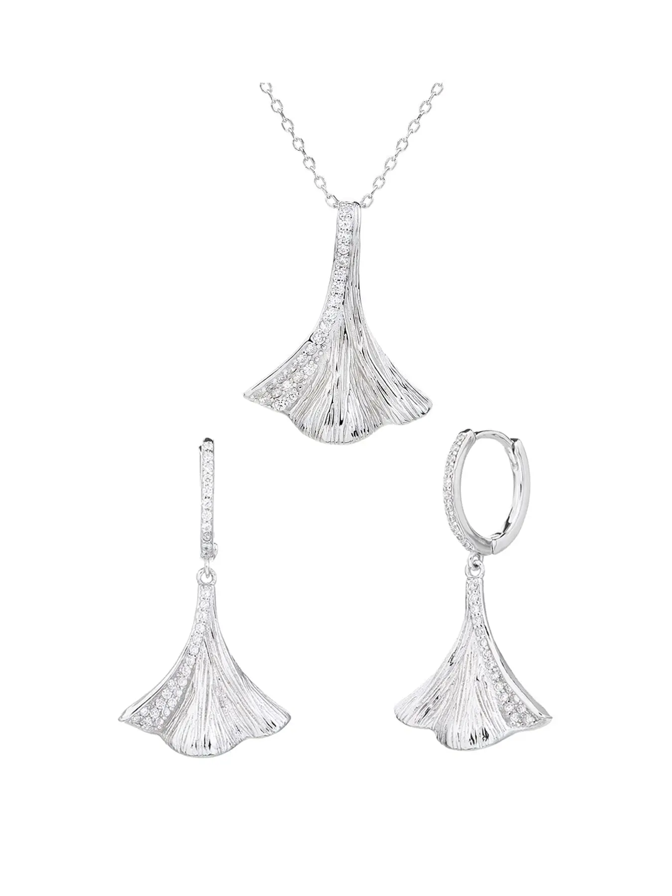Silver jeweled ginkgo biloba leaf shape