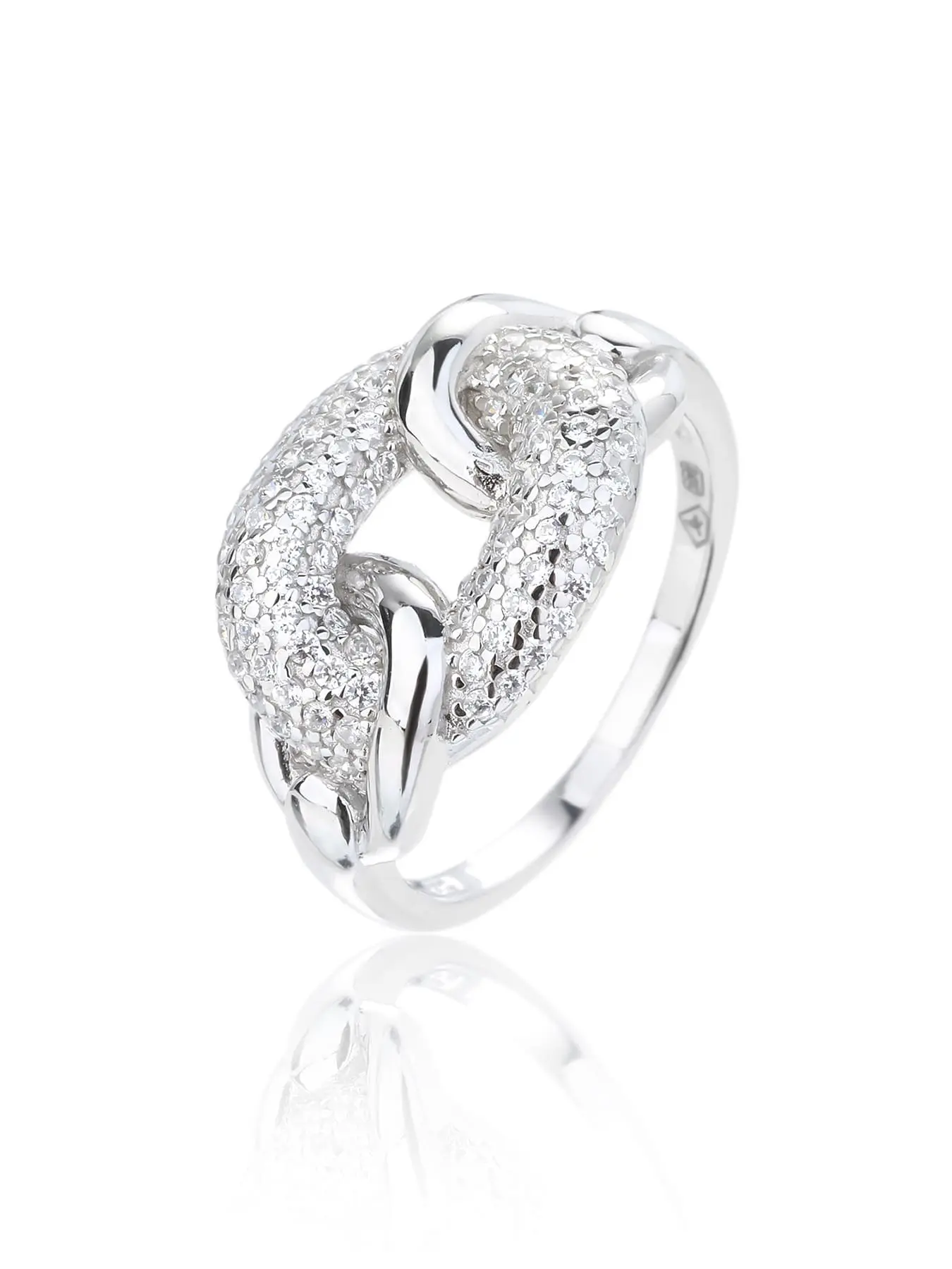 Silver link design ring with white cubic zirconia – modern elegance, unique look