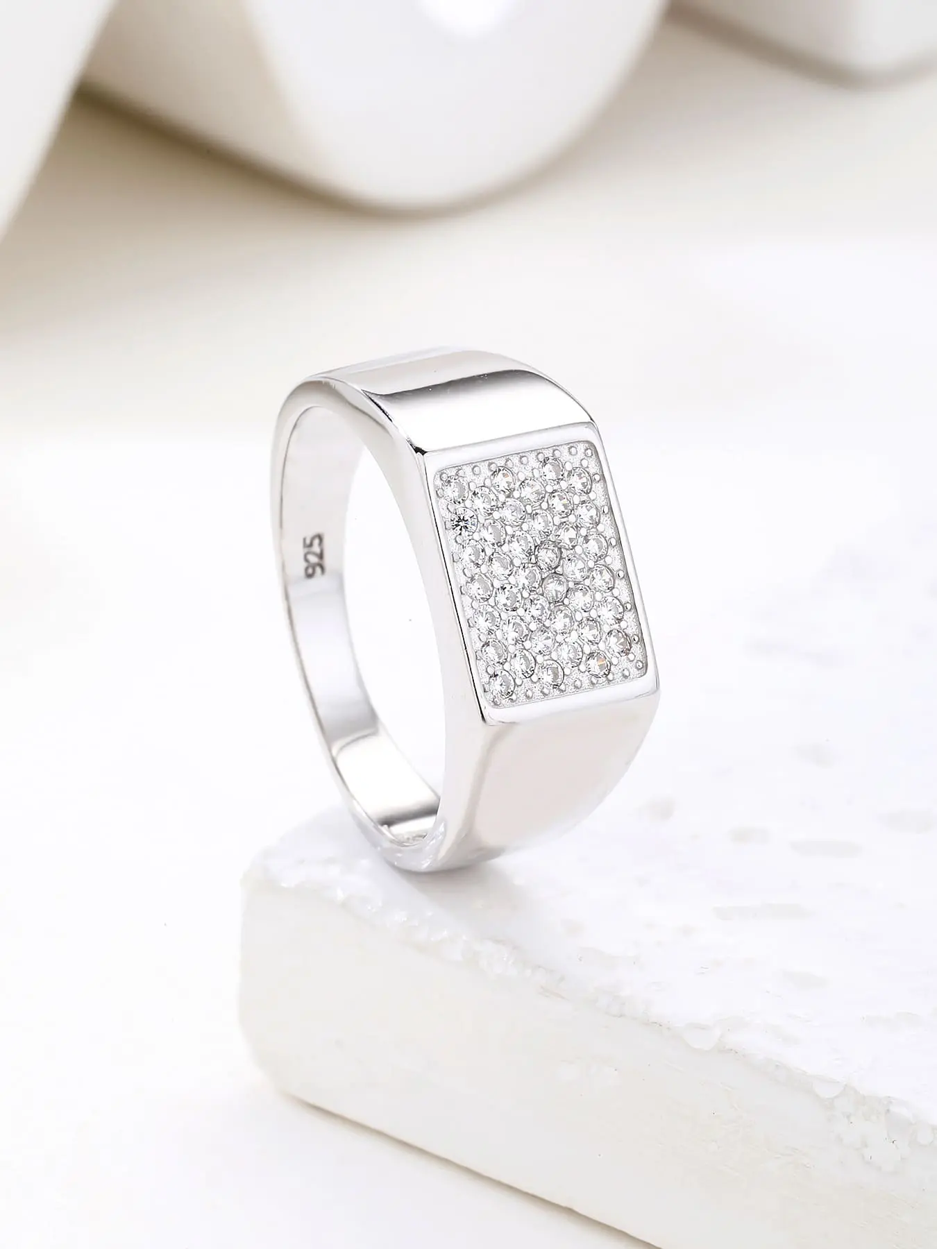 Masculine elegance – silver ring with brilliant white cubic zirconia stones! ✨