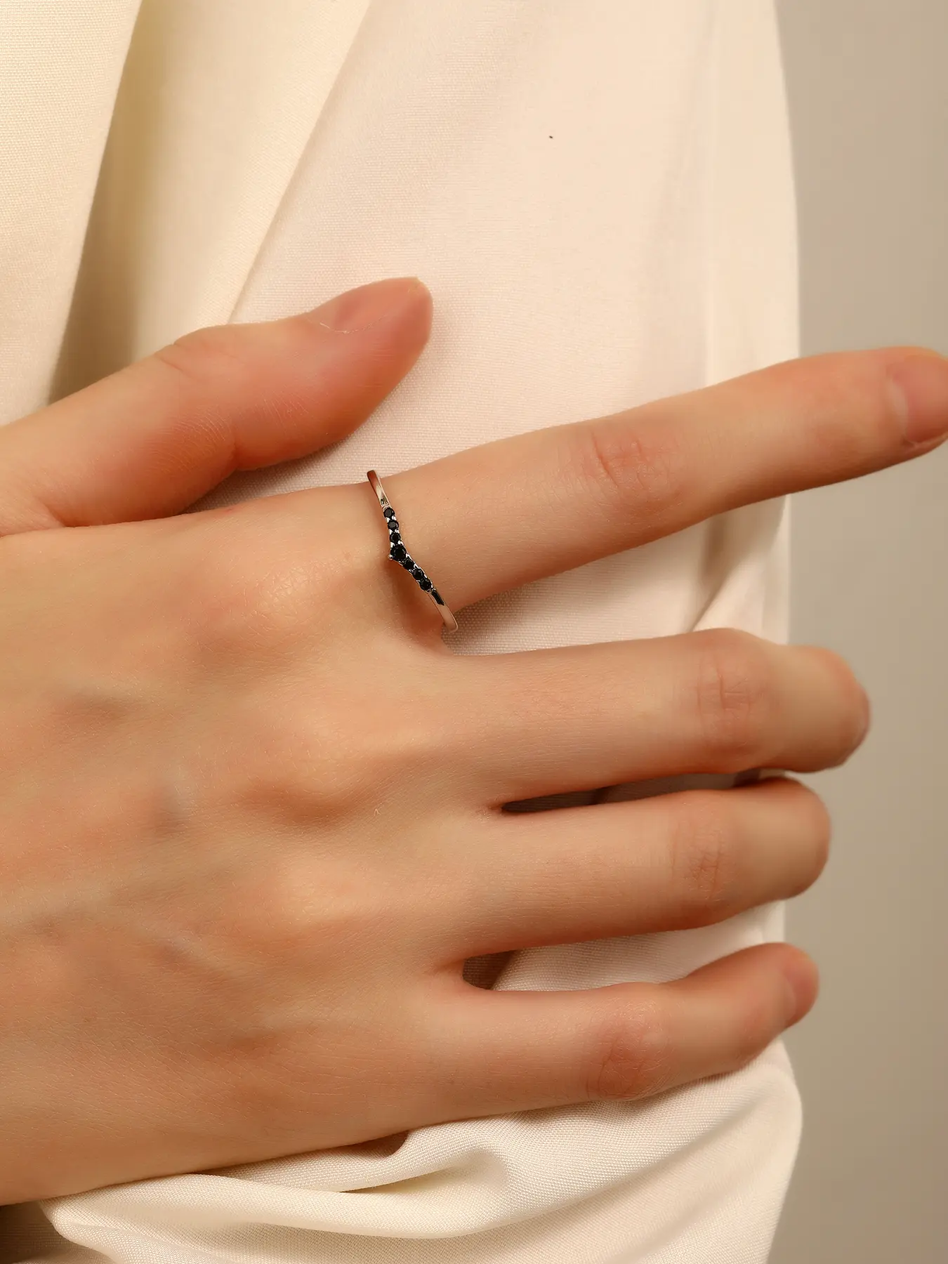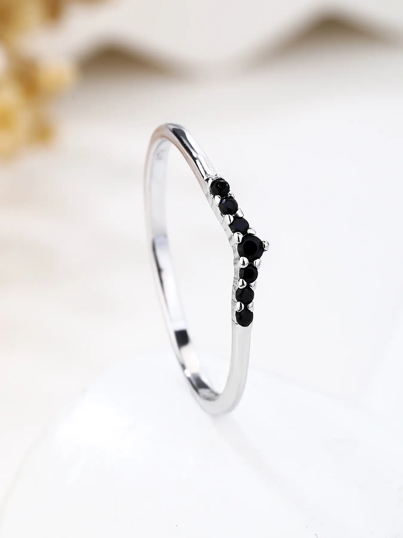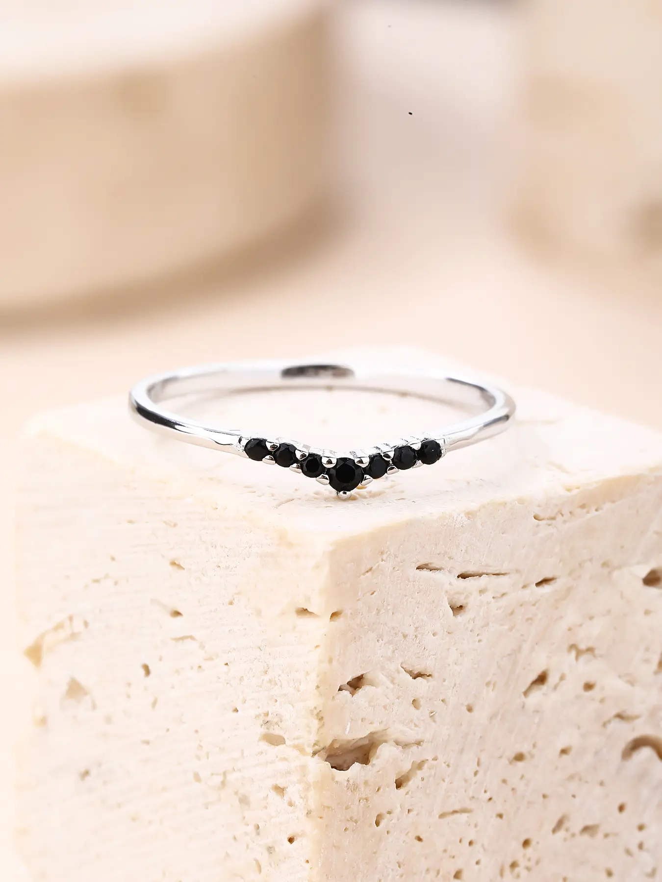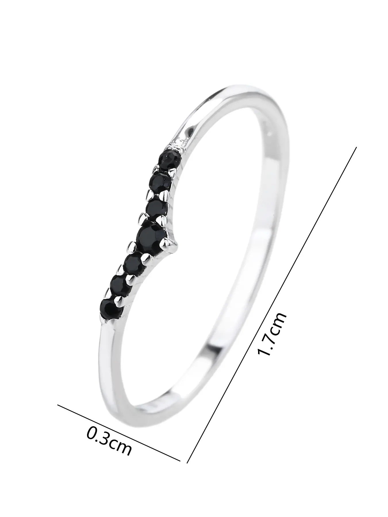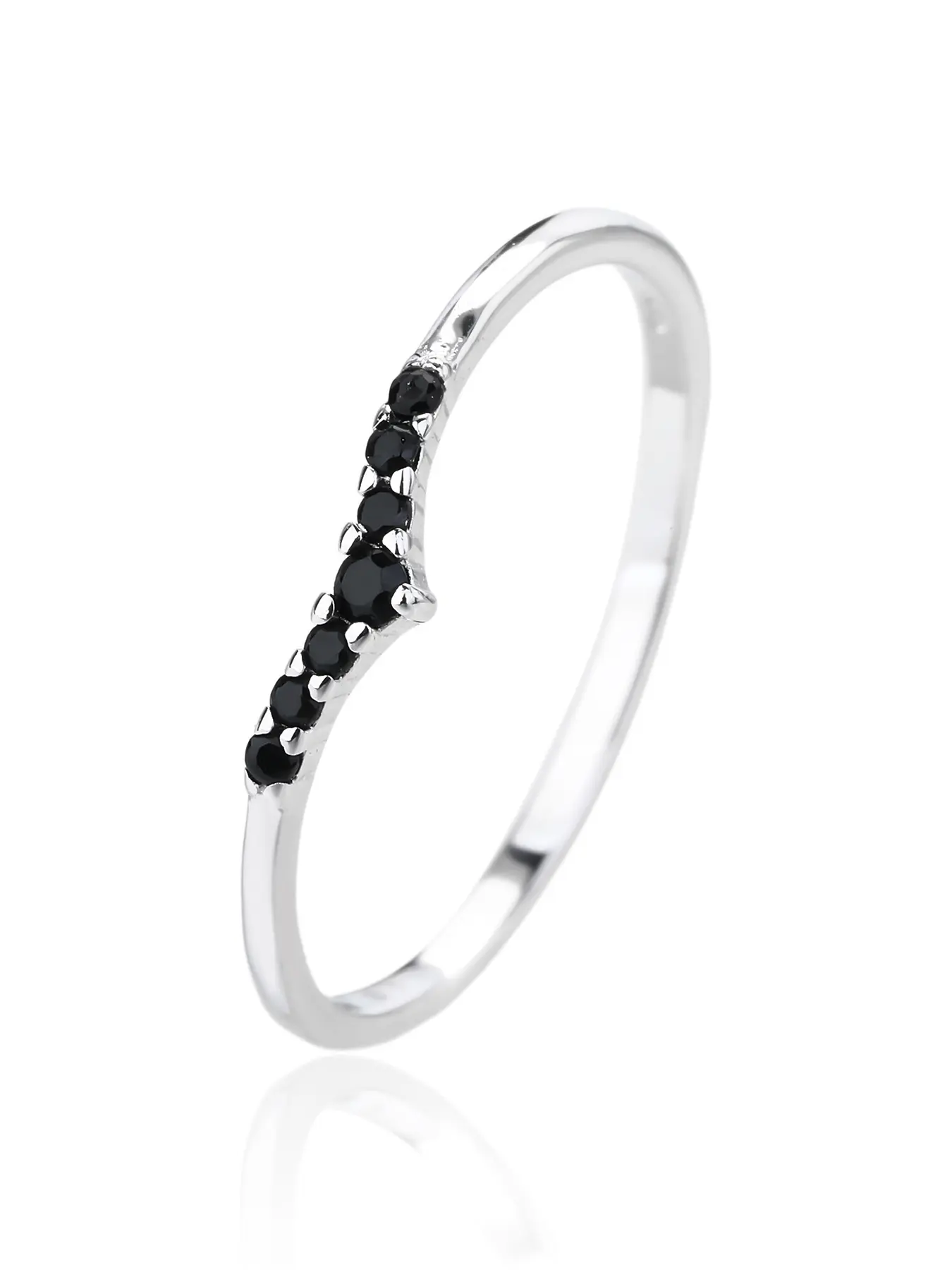 Silver V-shaped ring with black cubic zirconia – understated drama