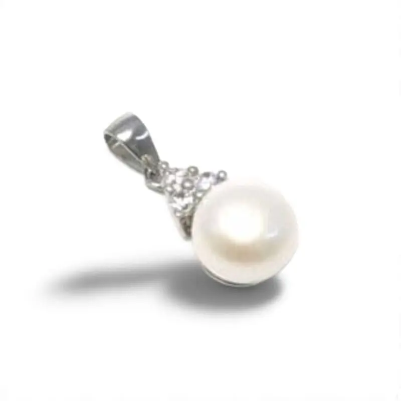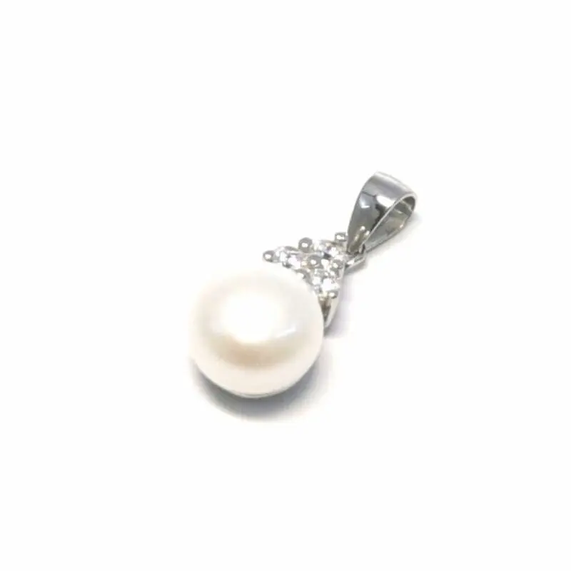 This delicately crafted pendant brings you the classic appeal of pearls and the sparkle of white stones. Its clean design will complement any outfit perfectly.