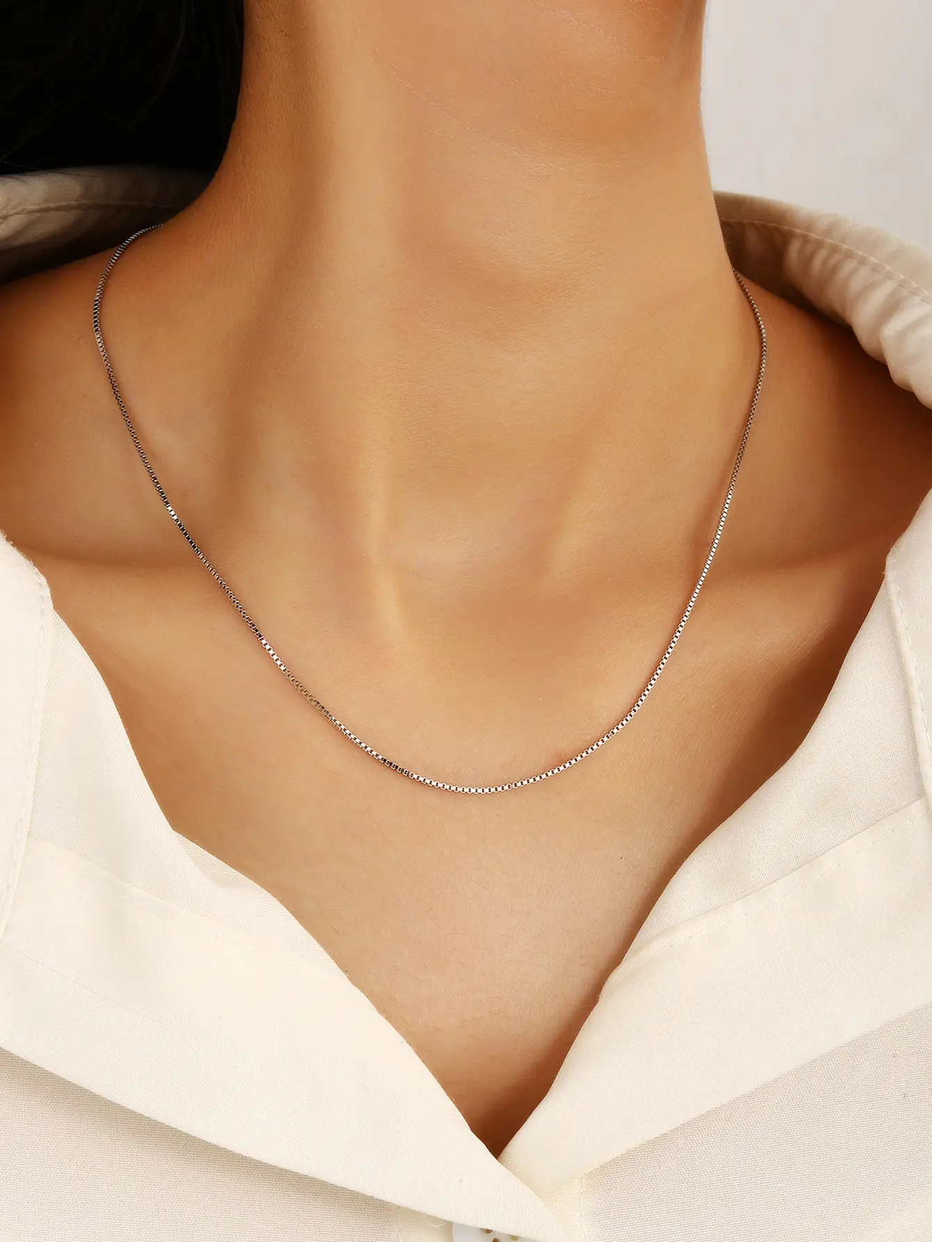 Thin cubic silver necklace – modern style in small details