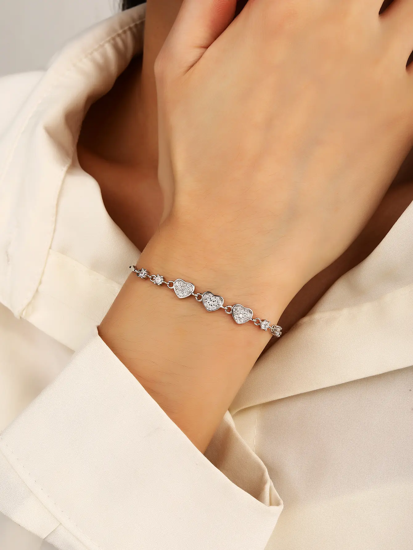 Heart motif zirconia stone bracelet – the radiance of love✨