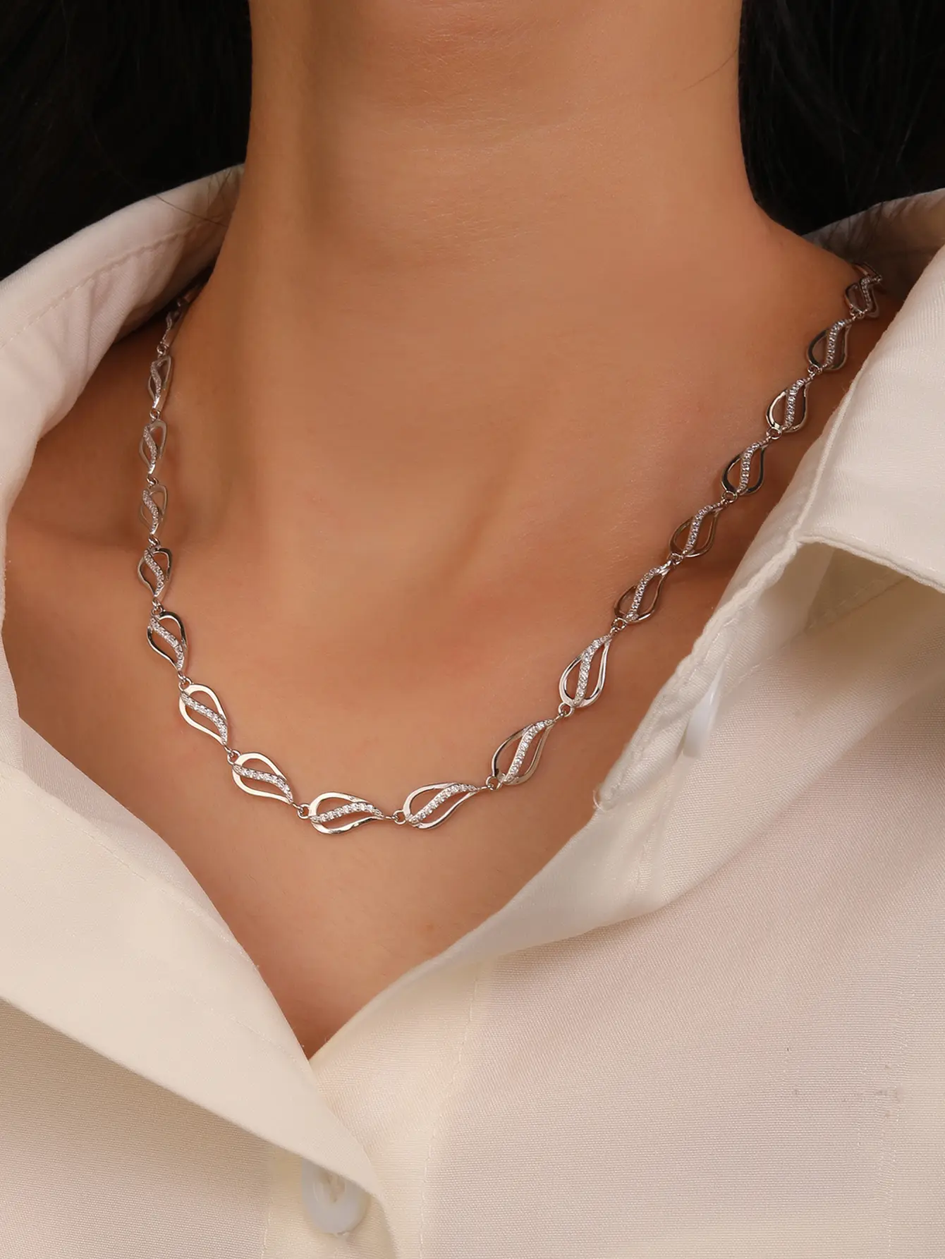 Zirconia stone wave pattern necklace – subtle sparkle and pure harmony