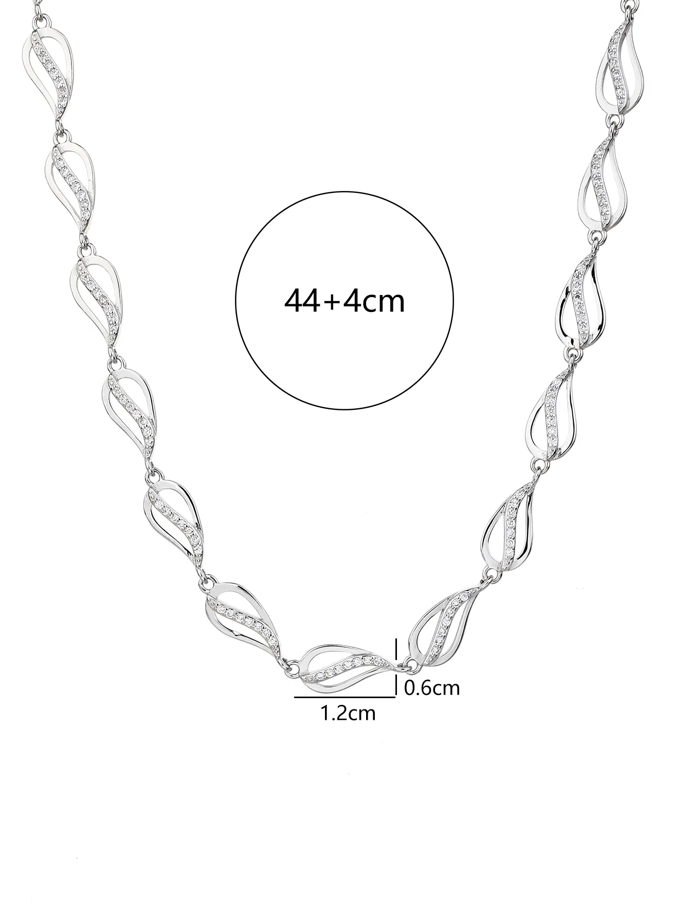 This 44+4 cm adjustable necklace is made of AG 925 silver with rhodium plating for durability and shine. Wave-shaped elements exude airy lightness, made even more special by tiny, sparkling cubic zirconia stones.